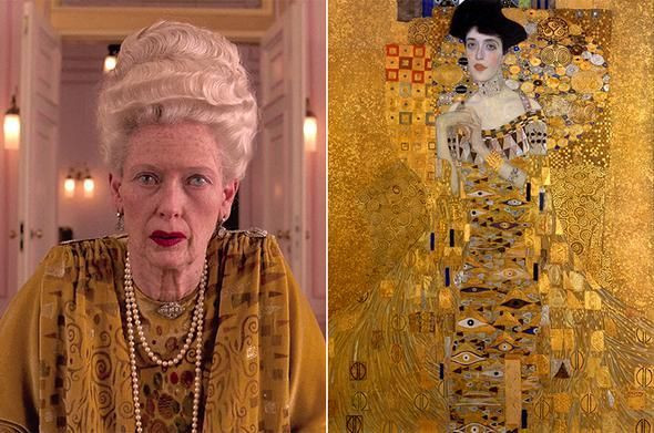 《布达佩斯大饭店》中蒂尔达·斯文顿身着克里姆特式戏服。