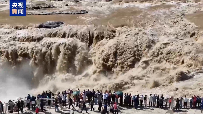 千里黄河凝壶口“金涛拍岸”引游人
